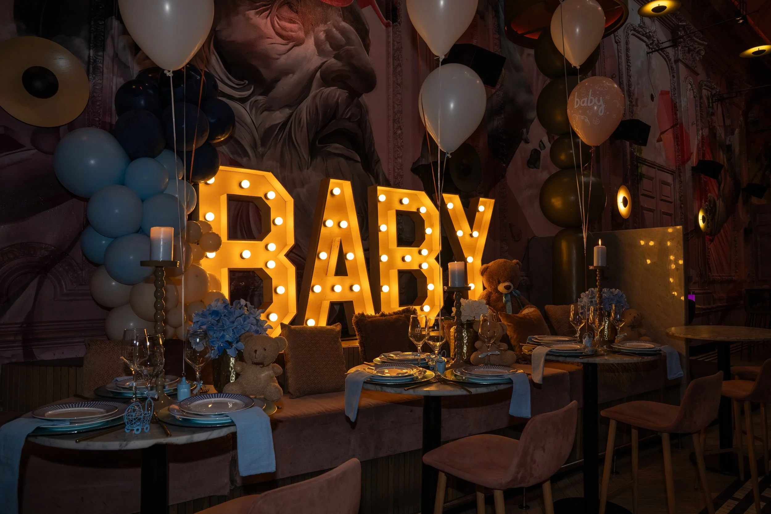 - Gouden letters BABY op de tafel